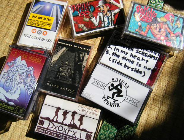 ずっと探してたデモテープの数々、やっと出てきた。COUNTDOWN TO OBLIVIONのジャケット、スキャンし忘れてたんだよー、とかDxOxFxJのデモすげーかっこいいんだよなあ、とかやっぱSAIGAN TERRORはデモの2曲目盛り上がるよなあ、とか初期のDOMINO '88は好きだったなあ、とか。24TRIBEのデモなんか、3つもあったwww 内 ひとつは寝ぼけてラジオを重ねちゃったんだよな……下北251で初めて観た時、あまりのカッコよさに急いでデモとシャツ買ったんだっけ……あ、シャツはどこだよ、とか。